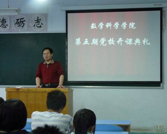 5月7日下午四点整,数学科学学院第五期党校开课典礼在蕴韬楼B2-301多媒体教室成功举办。参与本期党课学习的全体同学认真学习了予会领导讲话精神。此次开课典礼由数学科学学院团总支书记沈会焘老师主持,党总支副书记冯战申做了重要的讲话。