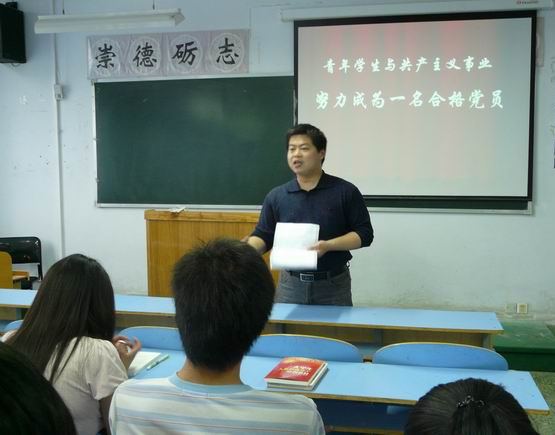 课堂上,沈会焘老师为大家详细讲解了申请入党的条件、党员应履行的责任和义务,以及保持党员先进性,发挥先锋模范作用。沈会焘老师在肯定过去团学工作成绩的同时,也指出了我们的缺点和不足之处,据此激励我们要不负众望,要有自己的理想和抱负。同时也指出我们应当认真学习领会讲话精神,并在实际行动中贯彻好、落实好,在政治上,思想要有高度,行动要有觉悟,充分展现当代大学生积极向上的精神风貌。