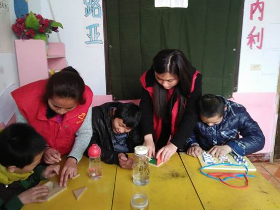 在教学的班级里,志愿者们陪孩子们一起看有利于成长的动画片,他们还帮助孩子们堆积木,协助老师们教学;在康复训练的地方,志愿者们帮助一些孩子训练,给他们做按摩,孩子们训练的更有信心了;在大班里,志愿者们陪孩子们聊天,鼓励他们,做一些益智游戏,孩子们很是开心;在活动室里,志愿者们给孩子们表演了一些节目,孩子们还主动参与进来,像一群快乐的小天使,笑声一遍一遍的响起;每个房间里都充满了欢声笑语,回荡在校园的每一个角落。志愿者们也被孩子们这种乐观向上的精神鼓舞着,他们的笑声更是坚定了志愿者们要把爱心公益活动坚持做下去的信念。