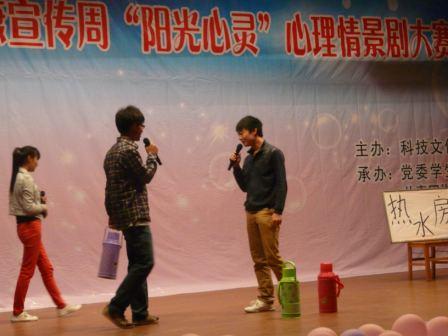 2012年05月20日,ok138cn太阳集团古天乐心理剧大赛在大学生活动中心拉开帷幕。数学与统计学院心理剧团队结束了之前在简陋的场地条件下为期两周的艰苦排练,终于走上了更大的舞台。由11级同学组成的代表队表演了原创话剧《真心话大冒险》,话剧主要讲述了在大学生活中的爱恋,并以此激励自己刻苦学习,最后感情成了是真心话大冒险的游戏,但追求的过程中,努力完善自己,使自己更加有能力才是最重要的。话剧突出艺术性,努力贴近同学们的生活,关注大学生经常出现的热点问题,生动写实,情节紧凑。
